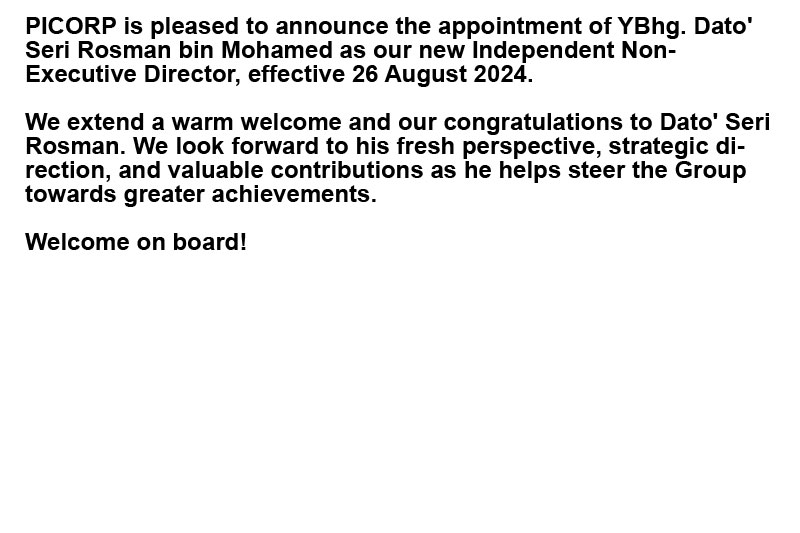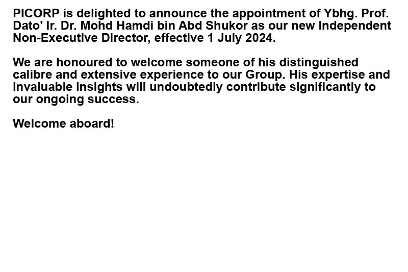 DIRECTOR ANNOUNCEMENT: WARM WELCOME TO DATO' SERI ROSMAN BIN MOHAMED